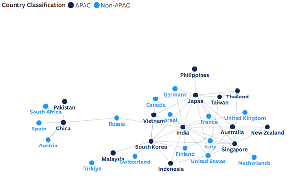 The region does participate in several international partnerships, but these tend to be focused on specific themes or bilateral exchanges rather than anchored in a shared, long-term regional structure.While APAC countries do engage in bilateral, multilateral, and thematic partnerships, but such a consolidated structure for collaboration is still uncommon across the region.